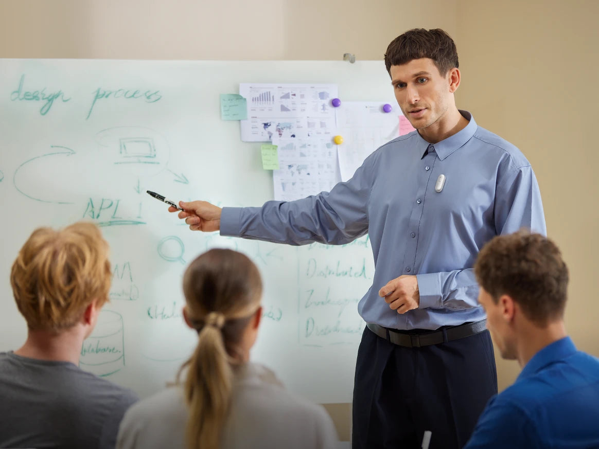 But again, the Plaud Note Pro handles this perfectly. Conference presentations. Classroom lectures. Live talks. Just record the audio. Its four microphones and noise-filtering technology work even in crowded rooms. You can snap photos during the session, too. They get attached to your recording for extra context.