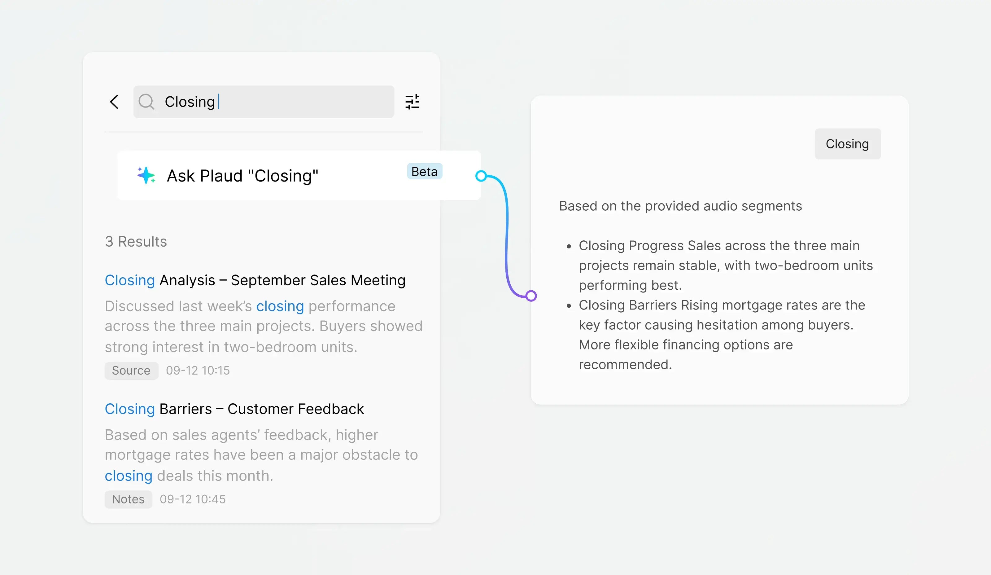 Plaud Intelligence surfaces meaningful perspectives around your query, helping you uncover deeper insights and build a more complete understanding with less effort.