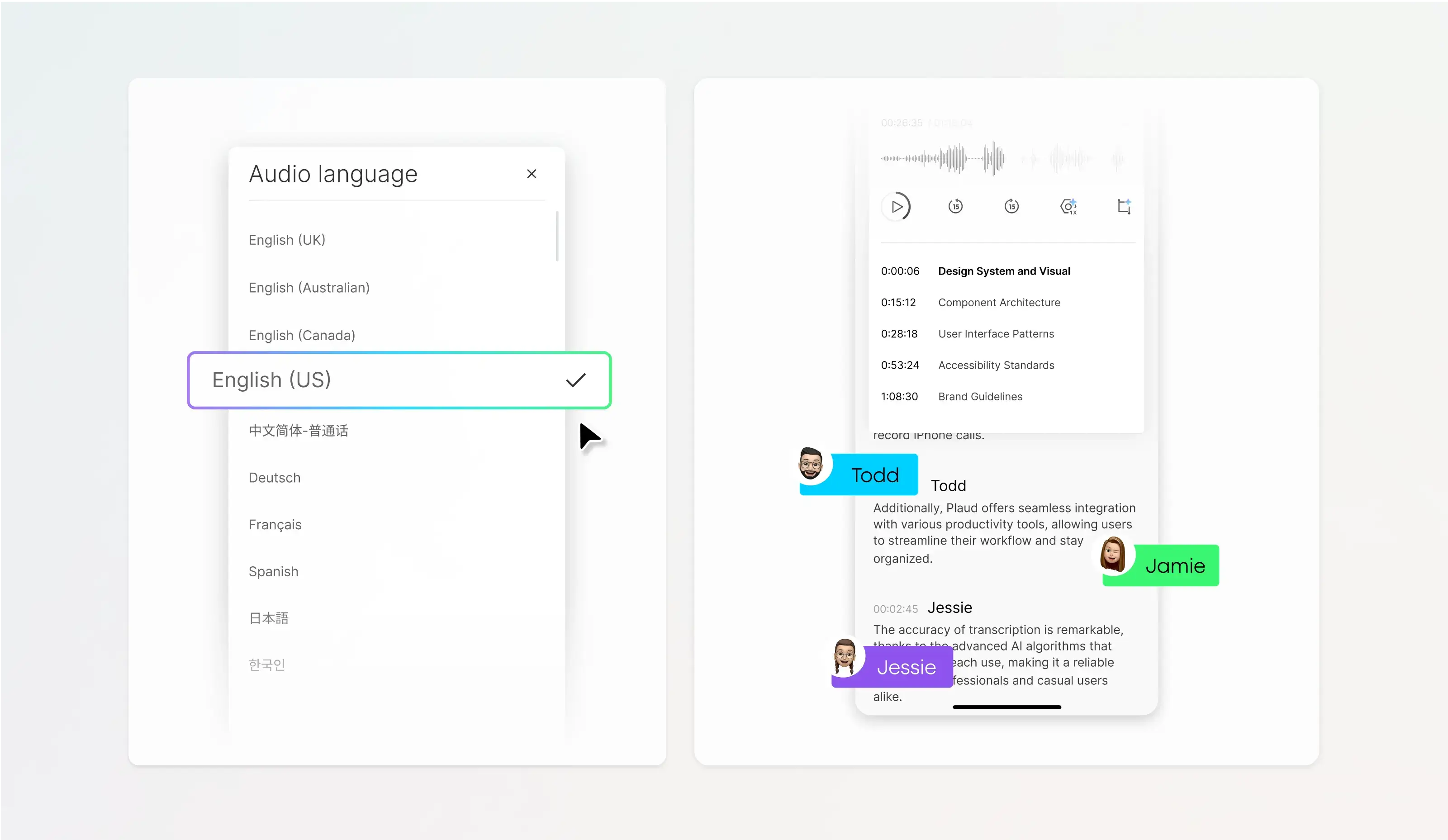 Transcribe accurately across 112 languages. Speaker labels and timestamps keep every conversation organized, so you always know who said what and when.