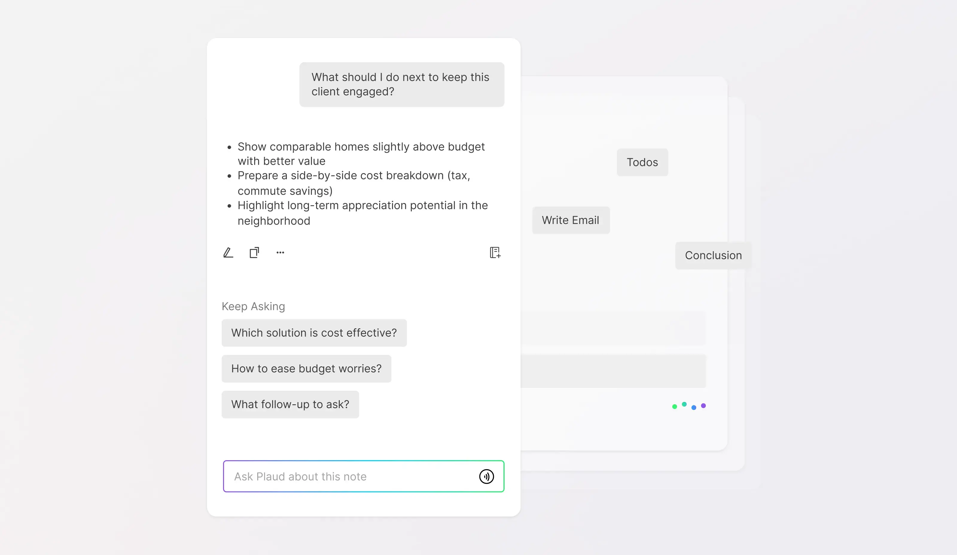 Stay focused in the room while conversations are captured, processed, and structured intelligently with context and nuance.