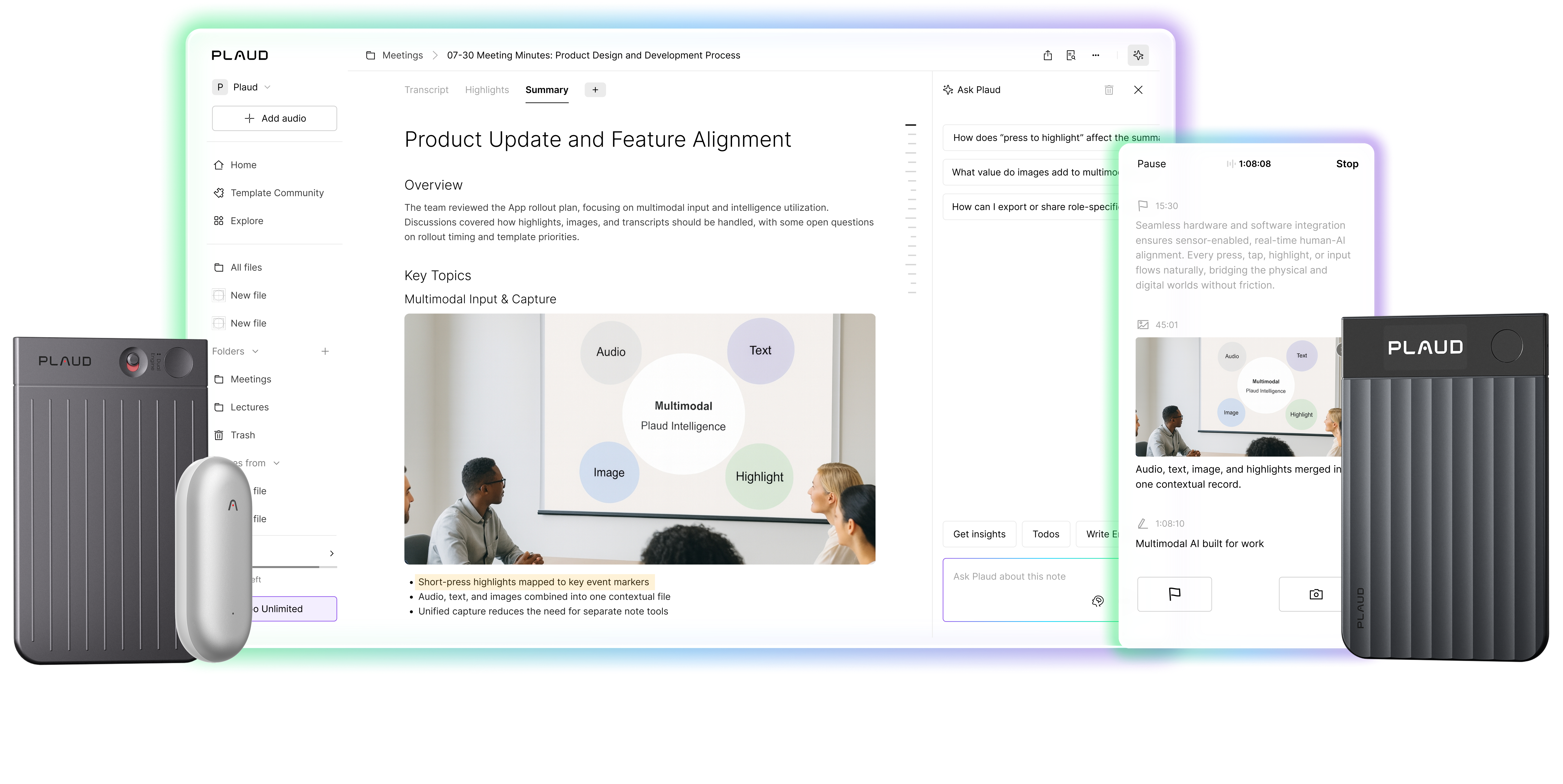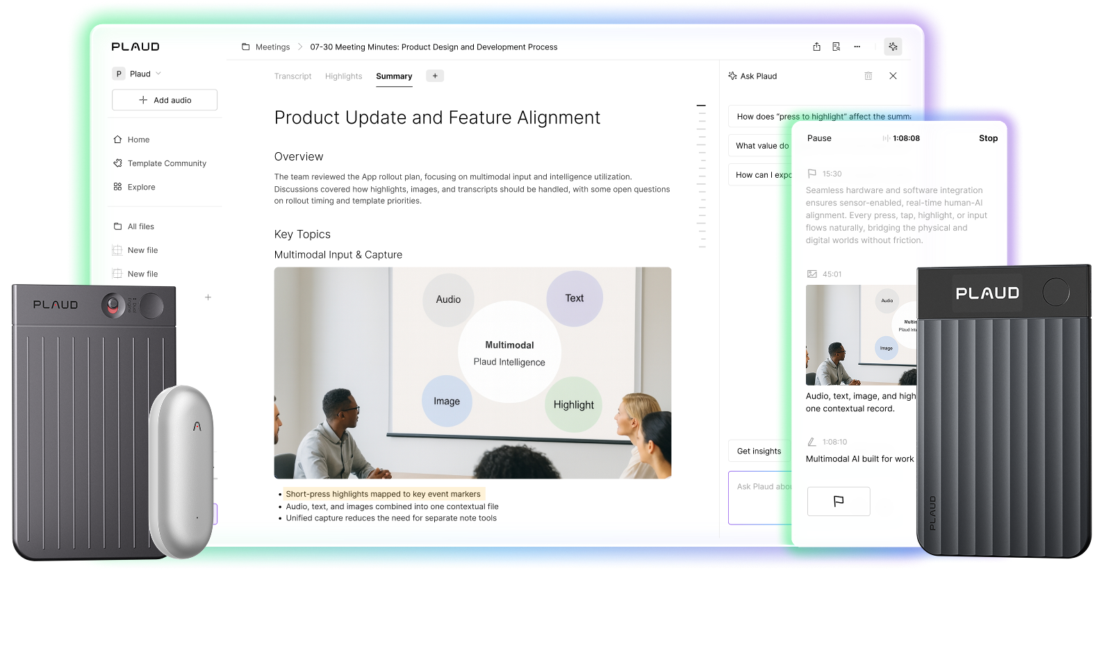 - Plaud AI synthesizes intelligence across all your recorded conversations, automatically.