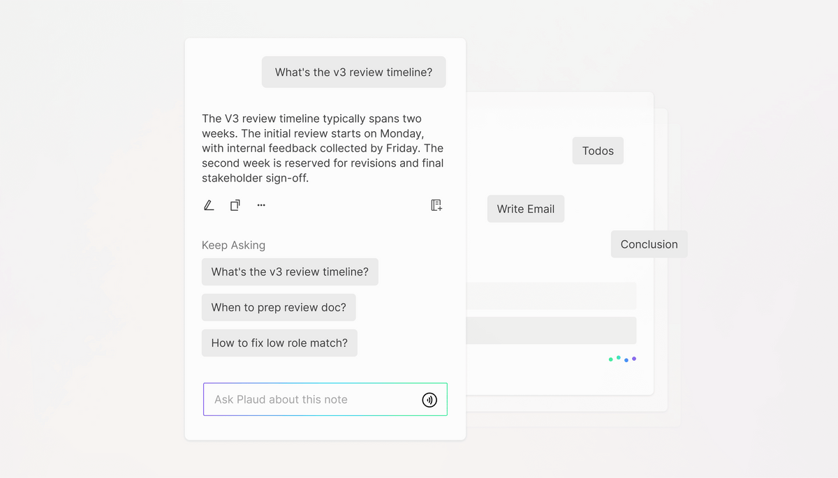 Each one is grounded in references and traceable back to your original audio, so Ask Plaud is always trustworthy, accurate, and free from hallucinations.