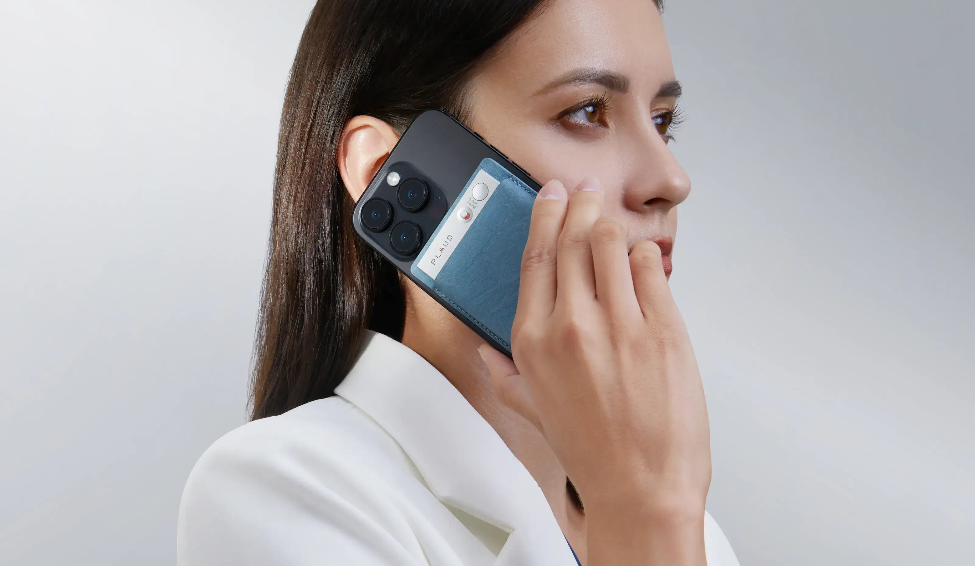 Attaches to the smartphone through the magnetic case to record.